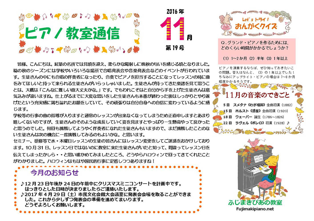 ピアノ教室通信第19号
