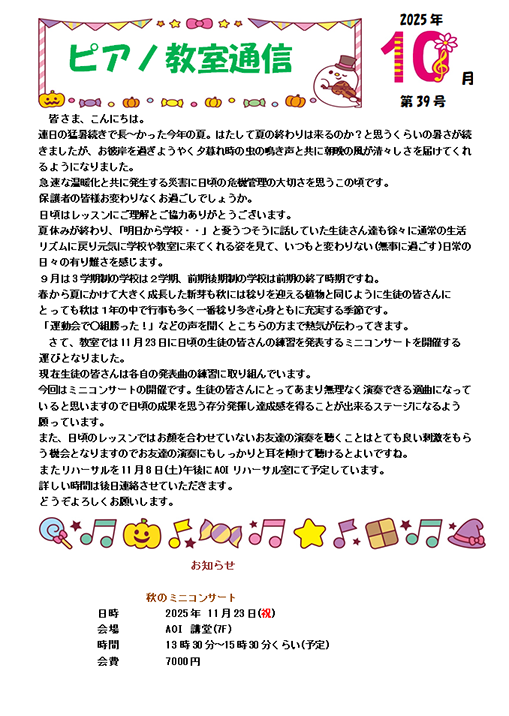 教室通信2023-2026 教室通信 2025年10月 第39号 PDFファイル 教室通信 2024年10月 第38号 PDFファイル 教室通信 2023年11月 第37号 PDFファイルtsuusin202311 教室通信 2023年2月 第36号
